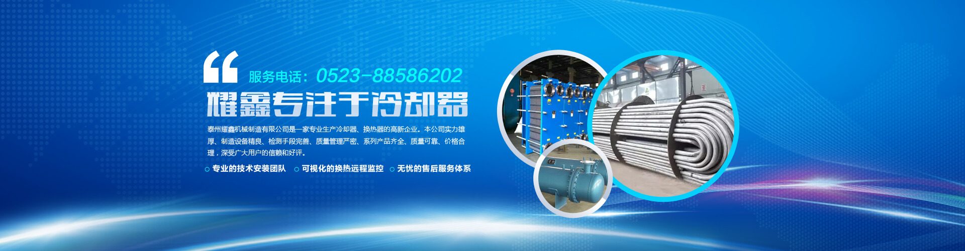 免費(fèi)咨詢方案 +泰州耀鑫機(jī)械制造有限公司座落于風(fēng)景如畫(huà)的江蘇魚(yú)米之鄉(xiāng)--全國(guó)文明城鎮(zhèn)婁莊鎮(zhèn),是一家專(zhuān)業(yè)生產(chǎn)風(fēng)冷卻器、列管式冷卻器、板式冷卻器的企業(yè)。本公司實(shí)力雄厚、制造設(shè)備精良、檢測(cè)手段完善、質(zhì)量管理嚴(yán)密、系列產(chǎn)品齊全、質(zhì)量可靠、價(jià)格合理,深受廣大用戶的信賴和好評(píng)。